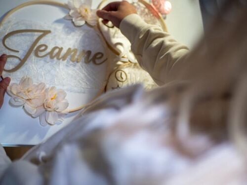 Quand je crée un cercle comme celui de Jeanne, je pense à la famille qui va le recevoir. À l'émotion quand ils découvriront ce prénom, ces fleurs, cette lumière douce.